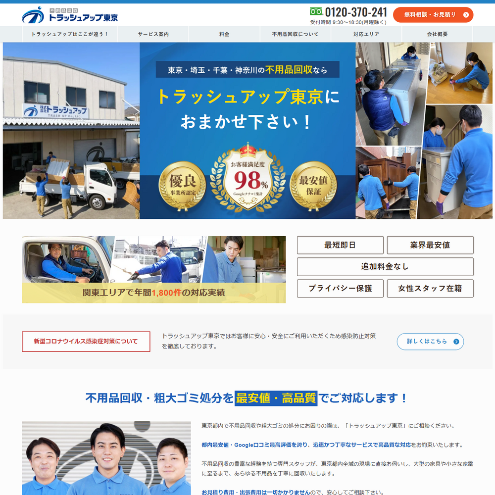 - 少量から一軒家丸ごとまでゴミの量に関わらずスタッフが明るく丁寧な対応を心がけている